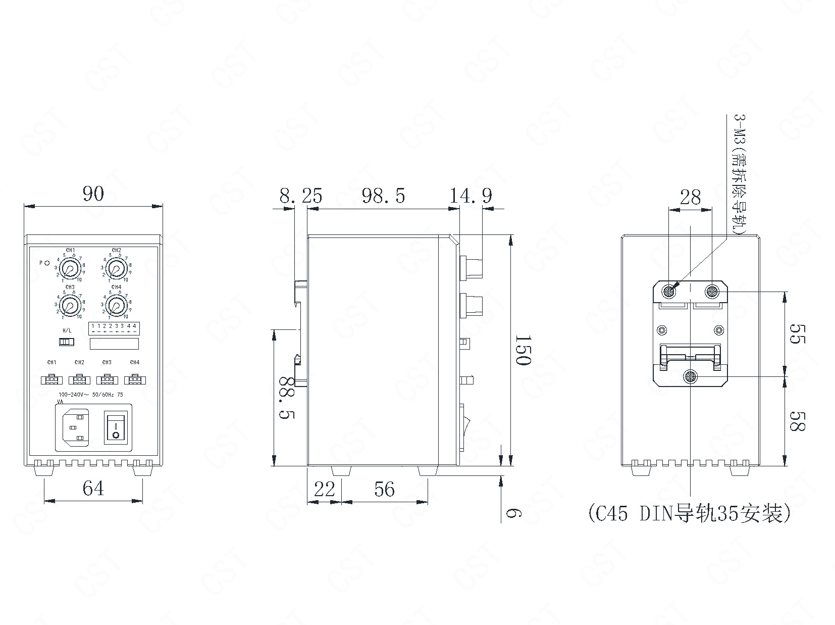 ◆ 安装方式:螺丝安装或DIN导轨安装。